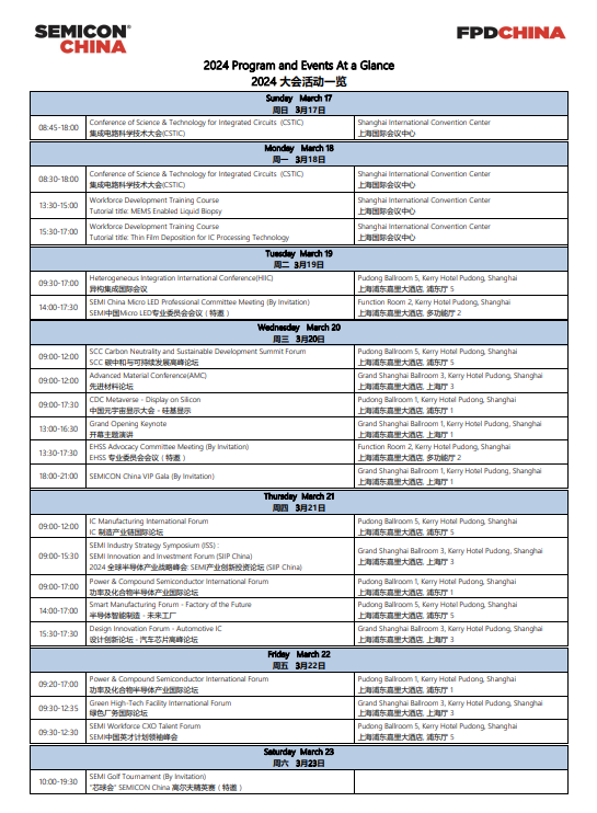 每年3月在上海舉辦的 SEMICON China 國際半導體展覽會,囊括了全球半導體制造領域主要的設備及材料廠商,匯聚了全球半導體及平板顯示行業眾多領先企業及重要決策者,幫助半導體人了解產業新形勢,是半導體行業交流合作的旗艦展覽。