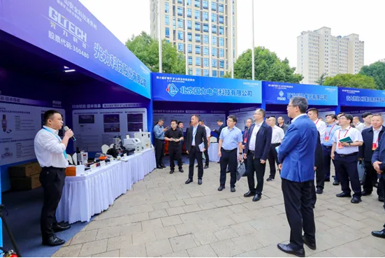 活動中,國家礦山監察局副局長周德昶等專家領導蒞臨光力科技展臺交流。光力科技董事長趙彤宇、副總經理李祖慶向各位領導專家匯報交流創新成果。