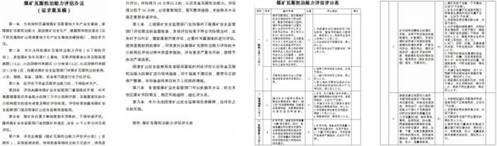 為進一步規(guī)范煤礦瓦斯防治能力評估工作 , 國家礦山安全監(jiān)察局組織起草了     《煤礦瓦斯防治能力評估辦法(征求意見稿) 》(附件1) ,現(xiàn)征求你單位意見。