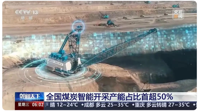 中煤協會數據顯示:全國已建成智能煤礦907處、智能工作面1806個,智能開采產能占比首超50%,替代1.6萬余個高危崗位。
